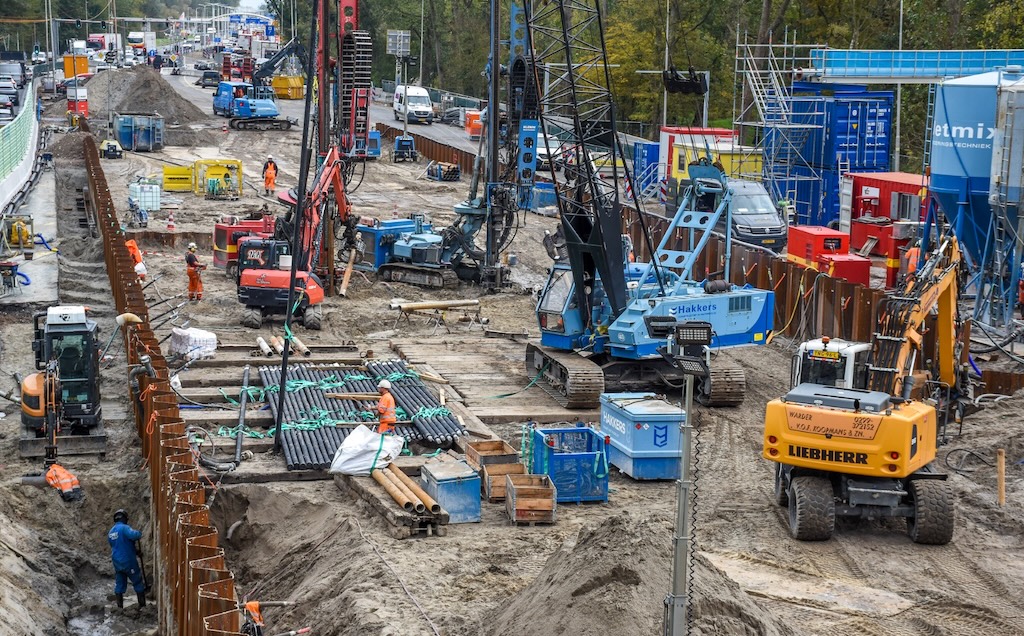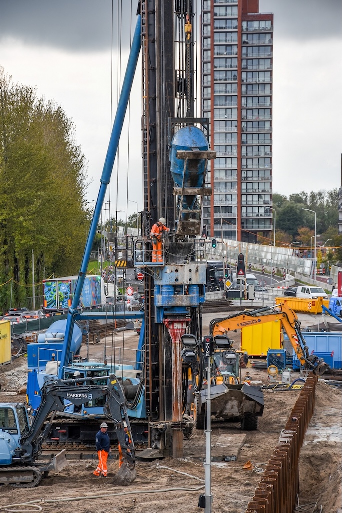 De fundering van de tunnel wordt aangebracht en de tunnelbak die 6 meter diep moet worden, wordt ‘ontgraven’.