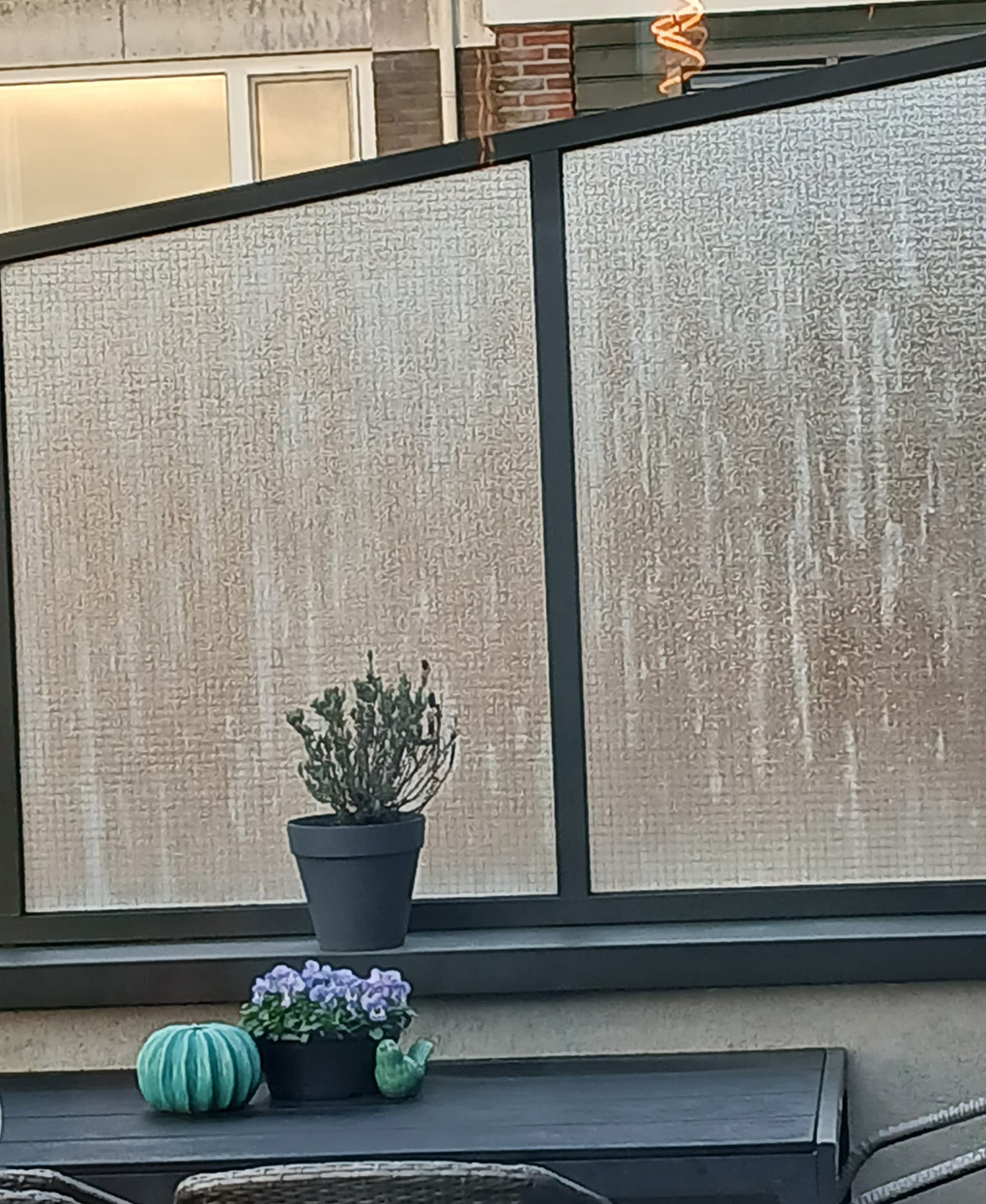‘Een groot deel van onze woning, met name de muren, kozijnen, de terrasvloer- en meubels en de ramen zitten onder de oliespetters. We zagen toen ook dat de motor van mijn man onder zat. Toen we een rondje door de buurt liepen, zagen we overal vlekken.’
