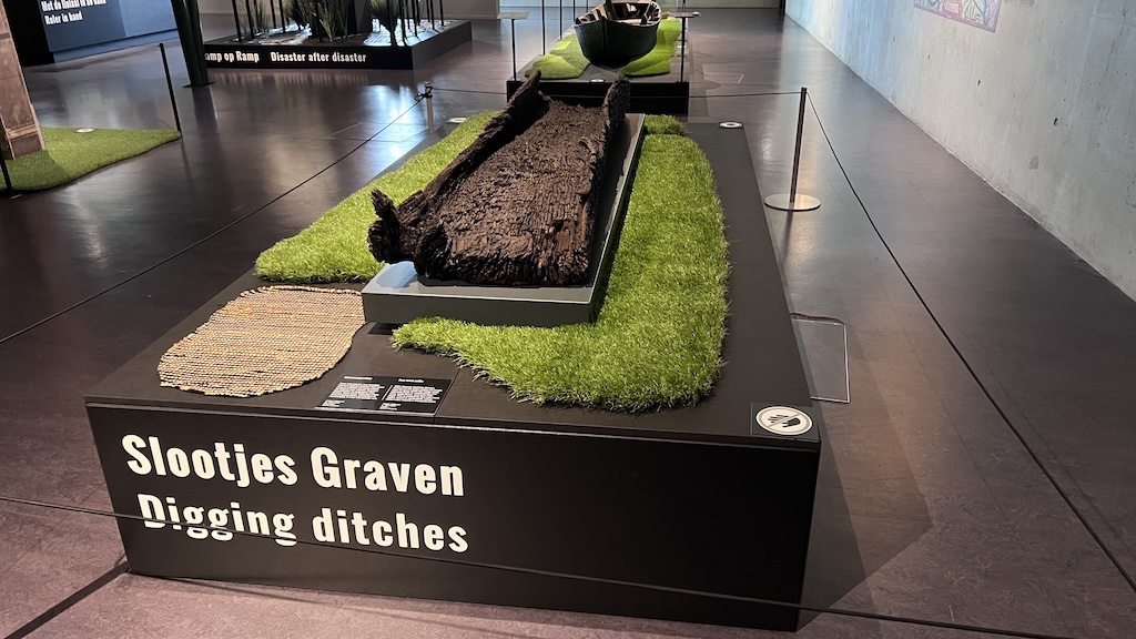 Ook in het Zaans Museum – zelf gesitueerd in de Kalverpolder – wordt gepolderd. Aan de wanden en in de expositieruimte ‘het verhaal van duizend jaar leven met het water in de Zaanstreek, het verhaal van pioniers, slimme koppen en aanpakkers die het wonen op drassige grond mogelijk maakten. Over botsende belangen, strijd voor behoud van het unieke landschap.’