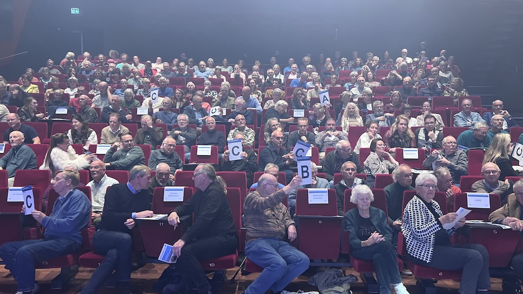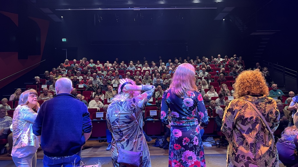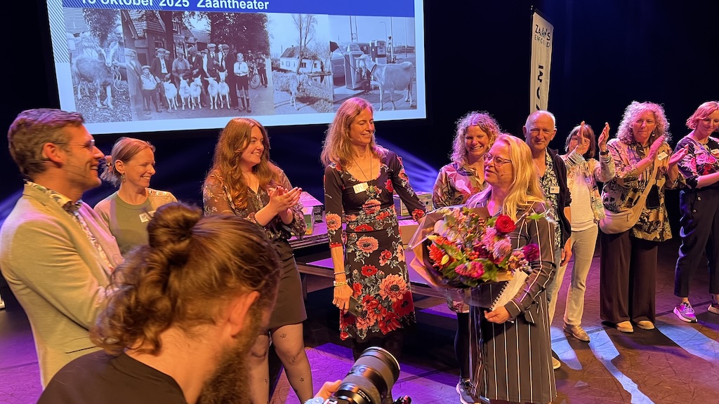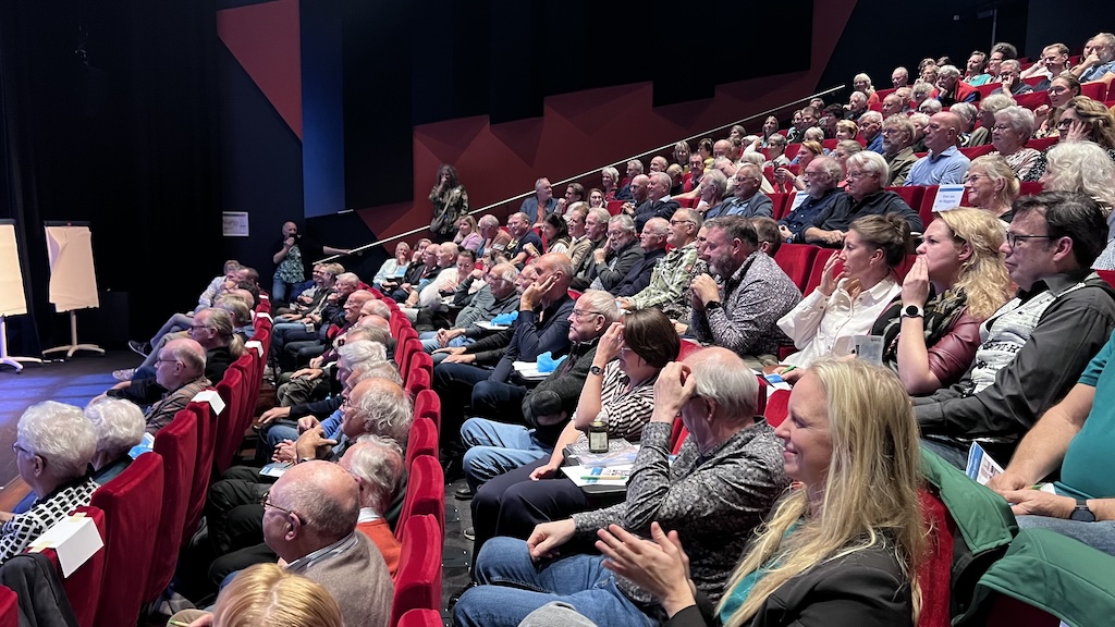 De Orkaan zat in de zaal en wist bijna alles (dachten we zelf achteraf), maar maakte vooral foto’s van het feestje in een bomvolle kleine zaal van het Zaantheater (dat wordt volgend jaar uitwijken).