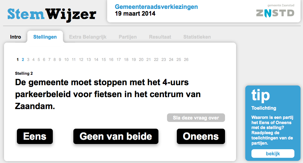Het leek zo’n mooi idee: alle Zaanse partijen met alle standpunten op een rijtje in de Stemwijzer.