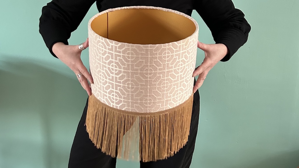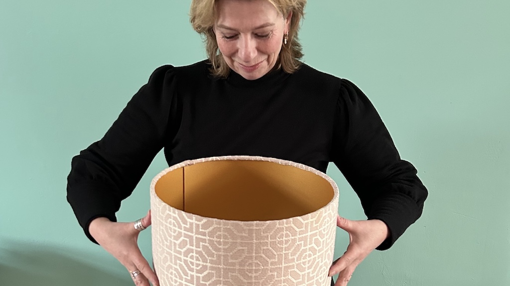 ‘Ik struin vintagewinkeltjes af en ik bestel oude onderdelen via de app Vinted. Alleen het snoer, de fitting en het messingwerk koop ik nieuw. Soms krijg ik maatwerkopdrachten. Dan vragen mensen bijvoorbeeld een specifieke stof aan.’